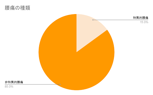実は、腰痛を訴える方の約85%は原因が特定しきれない「非特異的腰痛」であるとされているのです。
